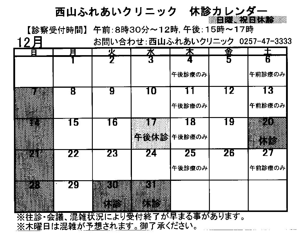 ●12月17日 会議のため午後休診です。